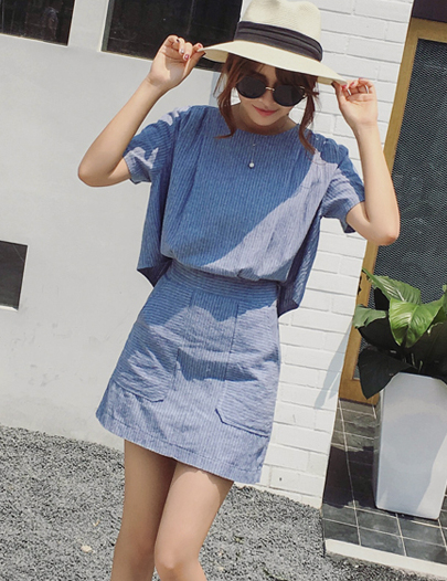 太阳屋W3-5夏装新款2016韩版女装显瘦竖条纹收腰后背纽扣裙连衣裙|1c1a2d