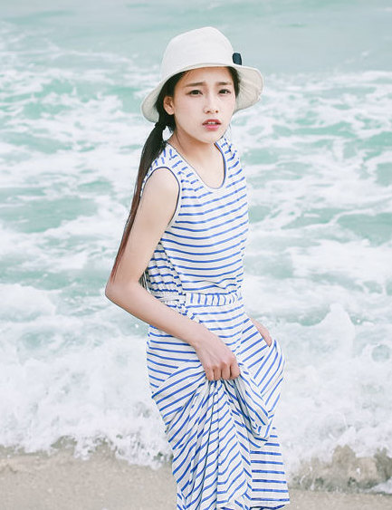 安小落 夏季无袖连衣裙 小清新条纹收腰背心长裙文艺 女|1c1ad8