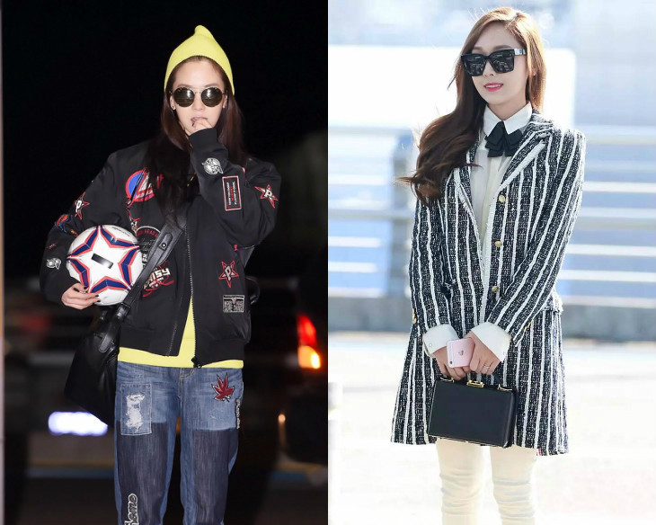郑秀妍 (Jessica) 1月12日韩国仁川机场街拍:身着Thom Browne条纹粗花呢大衣,拎Mark Cross小箱